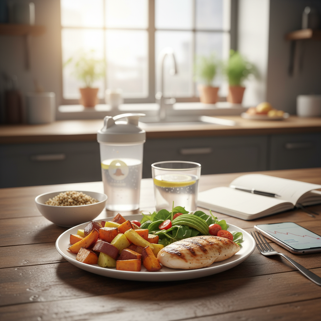 - Protéines d’abord : commencez chaque repas par la portion de protéines (viande, poisson, oeufs, legumineuses). Objectif : 25-30 g par repas, 1,2-1,5 g/kg de poids cible par jour